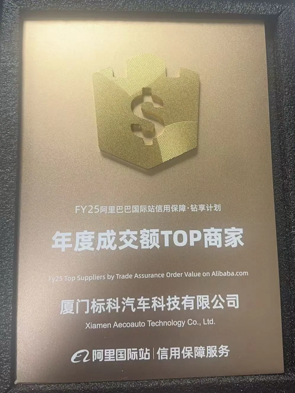 Поздравляем Сямен Аэкоауто Technology Co., Ltd. с тем, что он стал ведущим поставщиком в 25 финансовом году по стоимости заказа по обеспечению торговли на alibaba.com